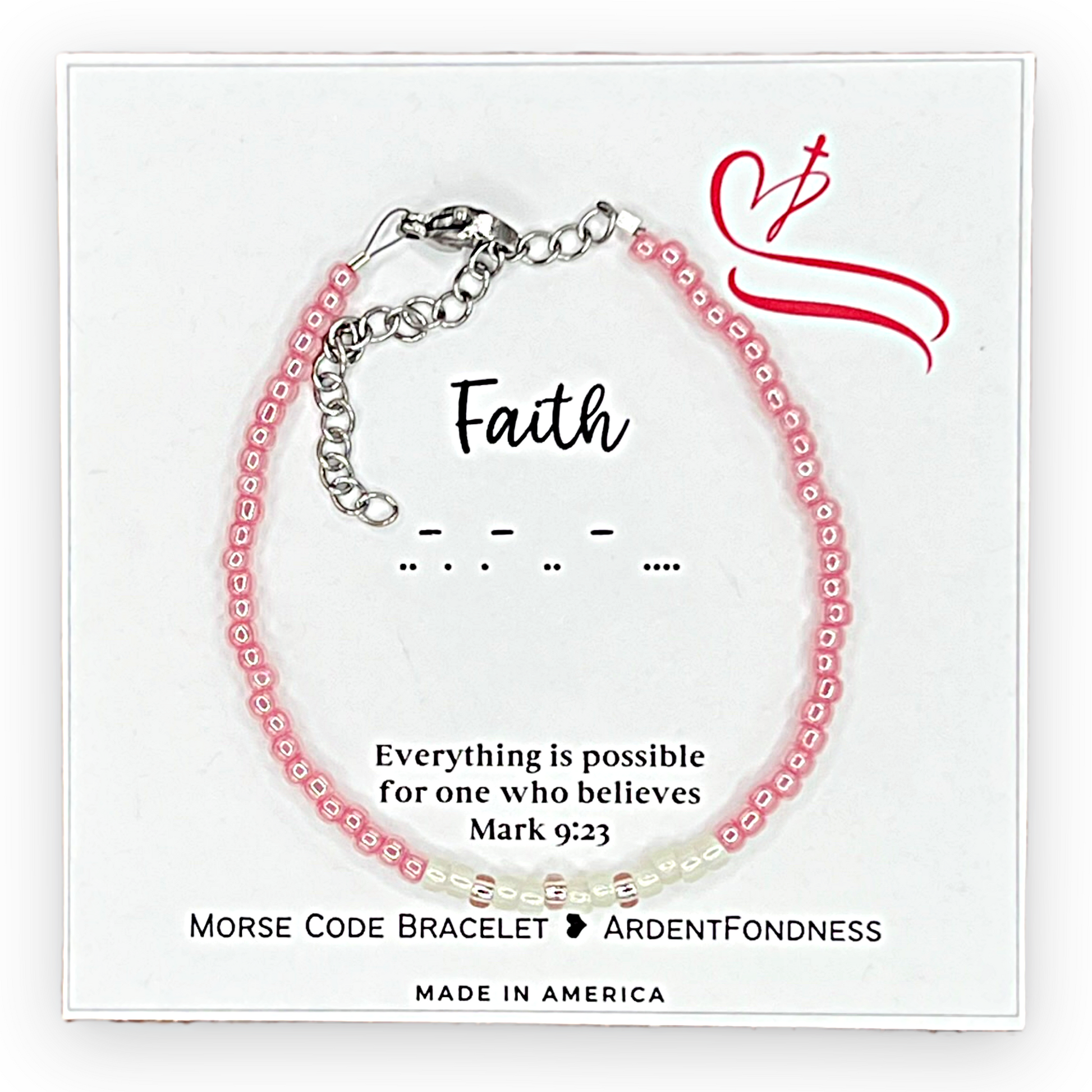 - Bracelet features a message in morse code and comes with a card with the message in English and Morse Code