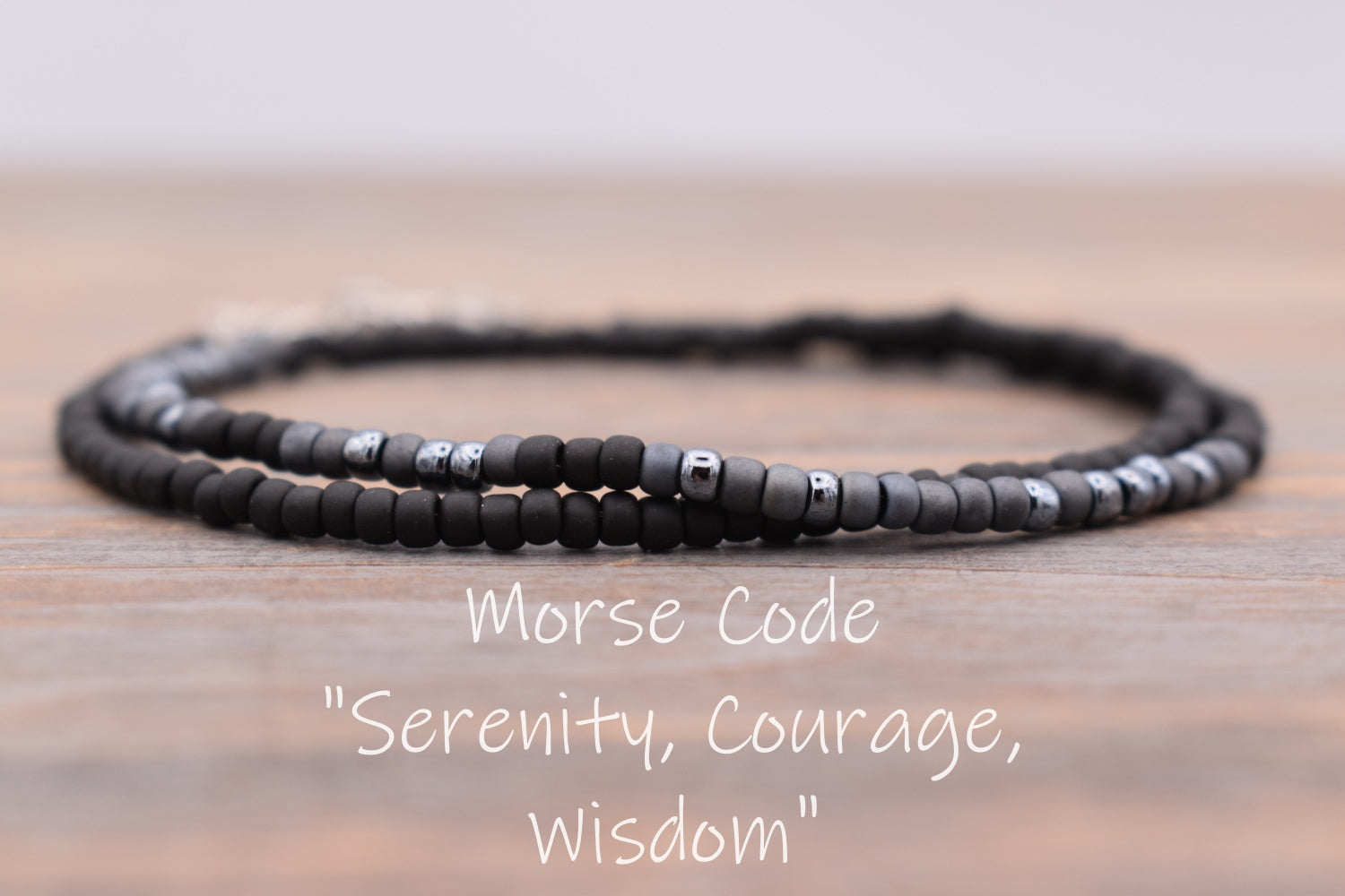 Prayer is the fastest thing on earth. It reaches God before you even say it. That's powerful. This morse code bracelet spells out "Serenity, Courage, Wisdom" with beads. It wraps 2 times around the wrist and is adjustable.
